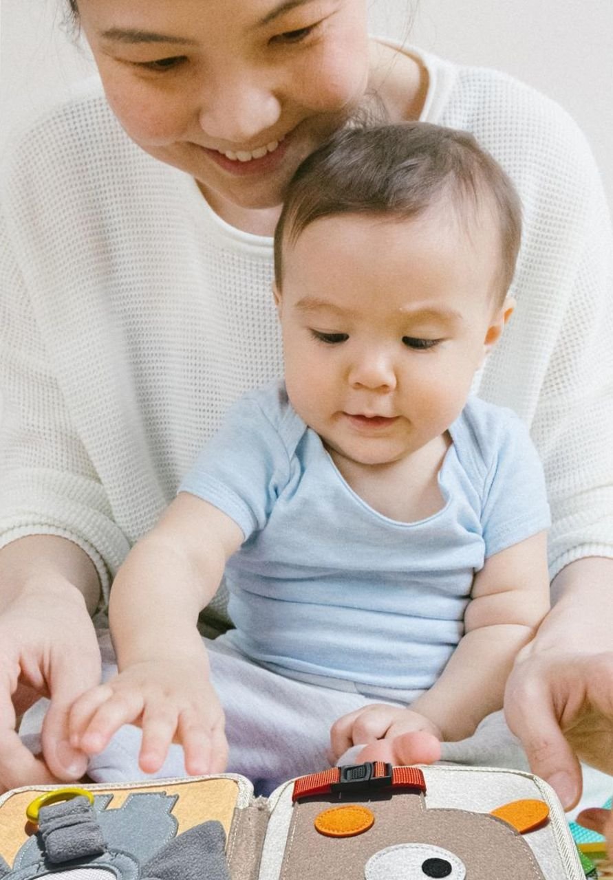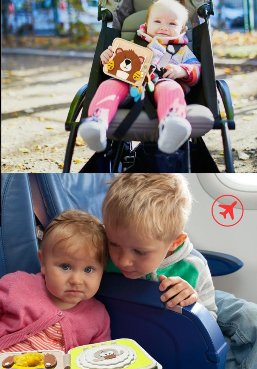 Astuce parent : Un busy board Montessori ou un livre d’activités sensoriel aide l’enfant à reproduire les gestes du quotidien tout en s’amusant.